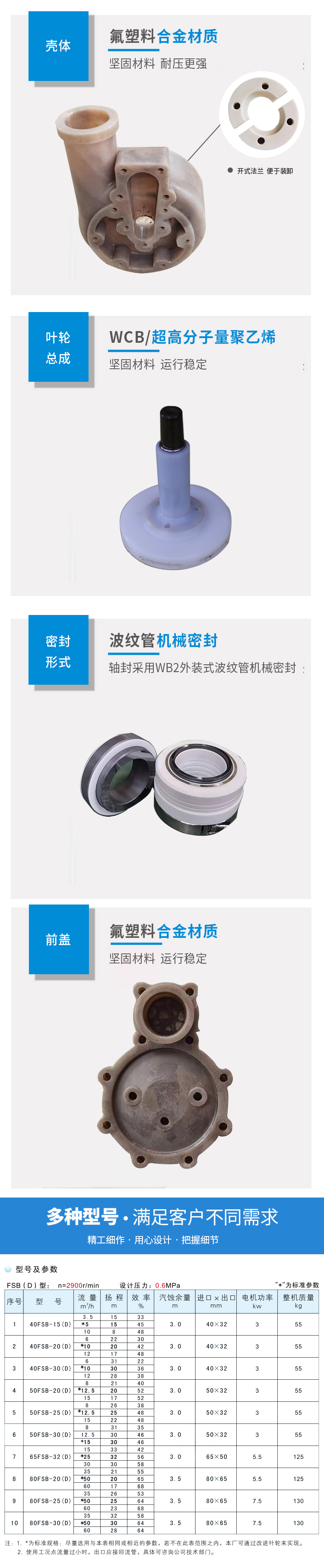 過流部件采用氟塑料、氟塑料合金制造,耐腐蝕性能優異。基體采用金屬材料制造,耐壓能力強。