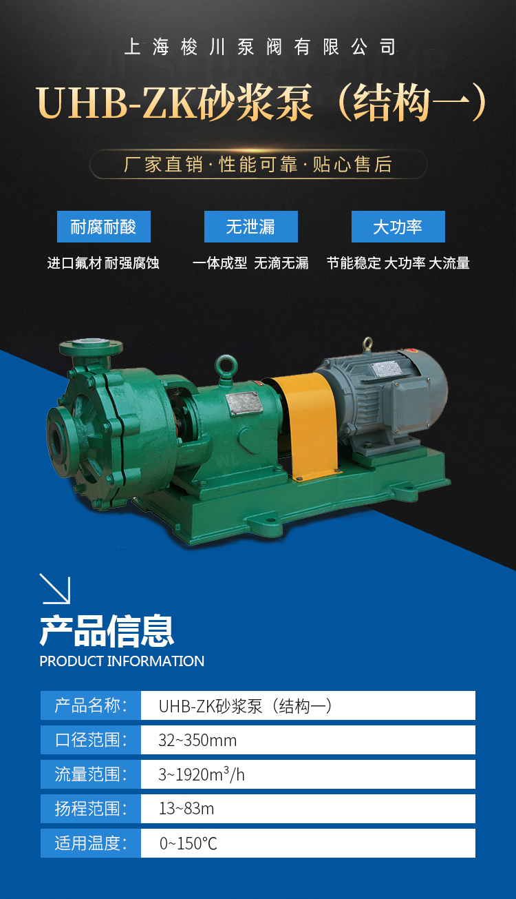 用途 本產品廣泛適用于:酸、堿、鹽、油類、食品飲料、酒類、有機溶劑等液體,尤其適用于輸送含細穎粒狀的強腐蝕性液體。 適用溫度:-20℃~80℃ 設計特點 耐離耐磨 UHB-zK型系列砂漿泵為懸臂式單級、單吸離心泵,其過流部件采用鋼襯超高分子量聚乙烯制造,具有較強的耐腐蝕性、卓越的耐磨性、抗蠕變性(耐環(huán)境應力開裂),同時采用金屬基體結構,提高了產品的承壓能力。 多功能 一種泵能適應各種不同的工況。如:既可以輸送酸、堿類清液或料漿,也可以輸送冶煉行業(yè)各種腐蝕性礦漿,還可以輸送硫酸行業(yè)各類稀酸、環(huán)保行業(yè)的各類污水等。 多種密封 該系列泵采用多種密封方式:K型動力密封、單端面機械密封、集裝式機封和雙端面機械密封,可根據具體工況條件選用。